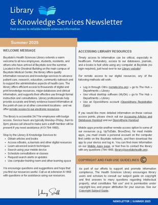 Baystate Library & Knowledge Services Newsletter - Summer 2022